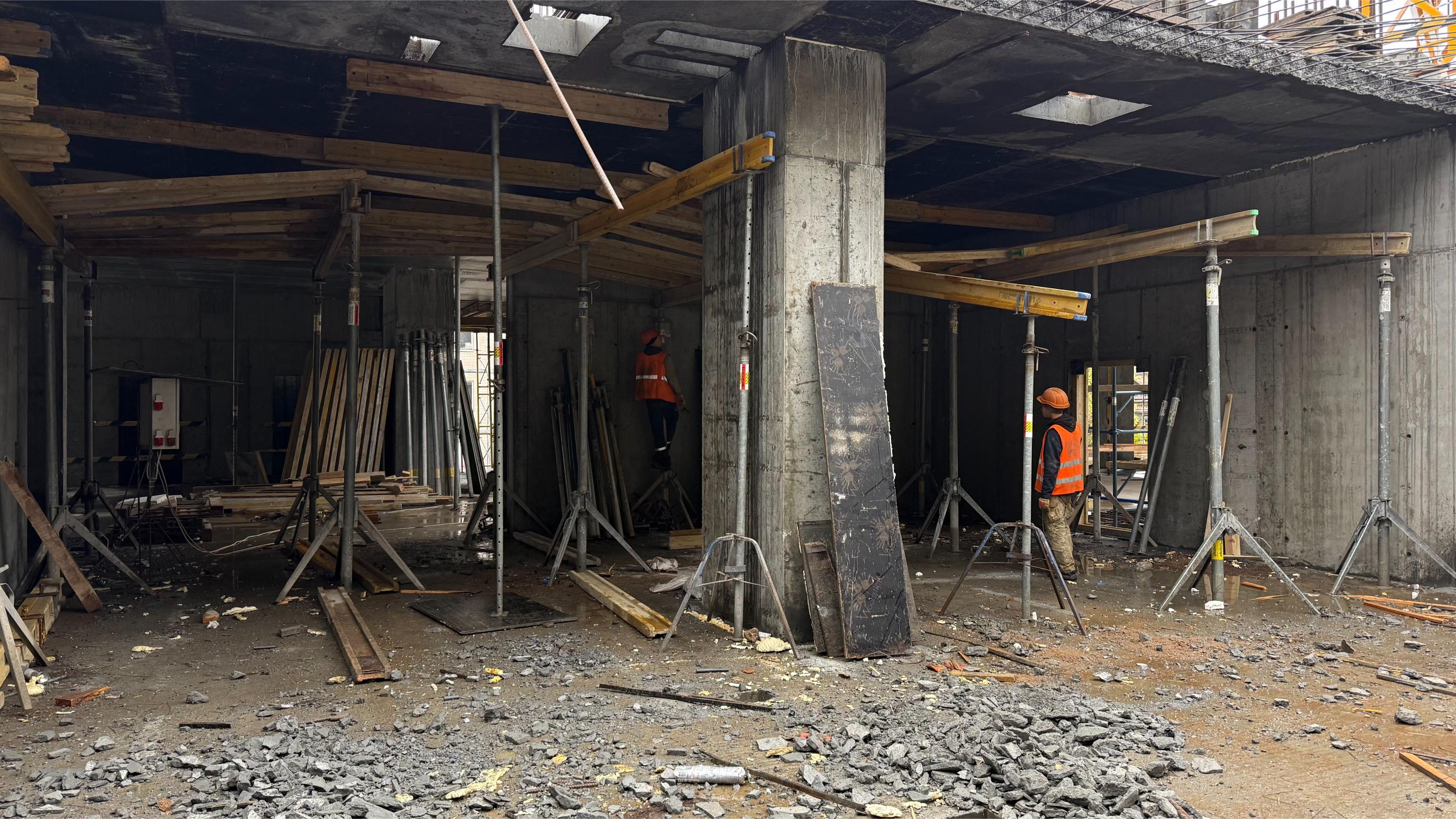 Бетонування вертикальних конструкцій -2 поверху – 90%